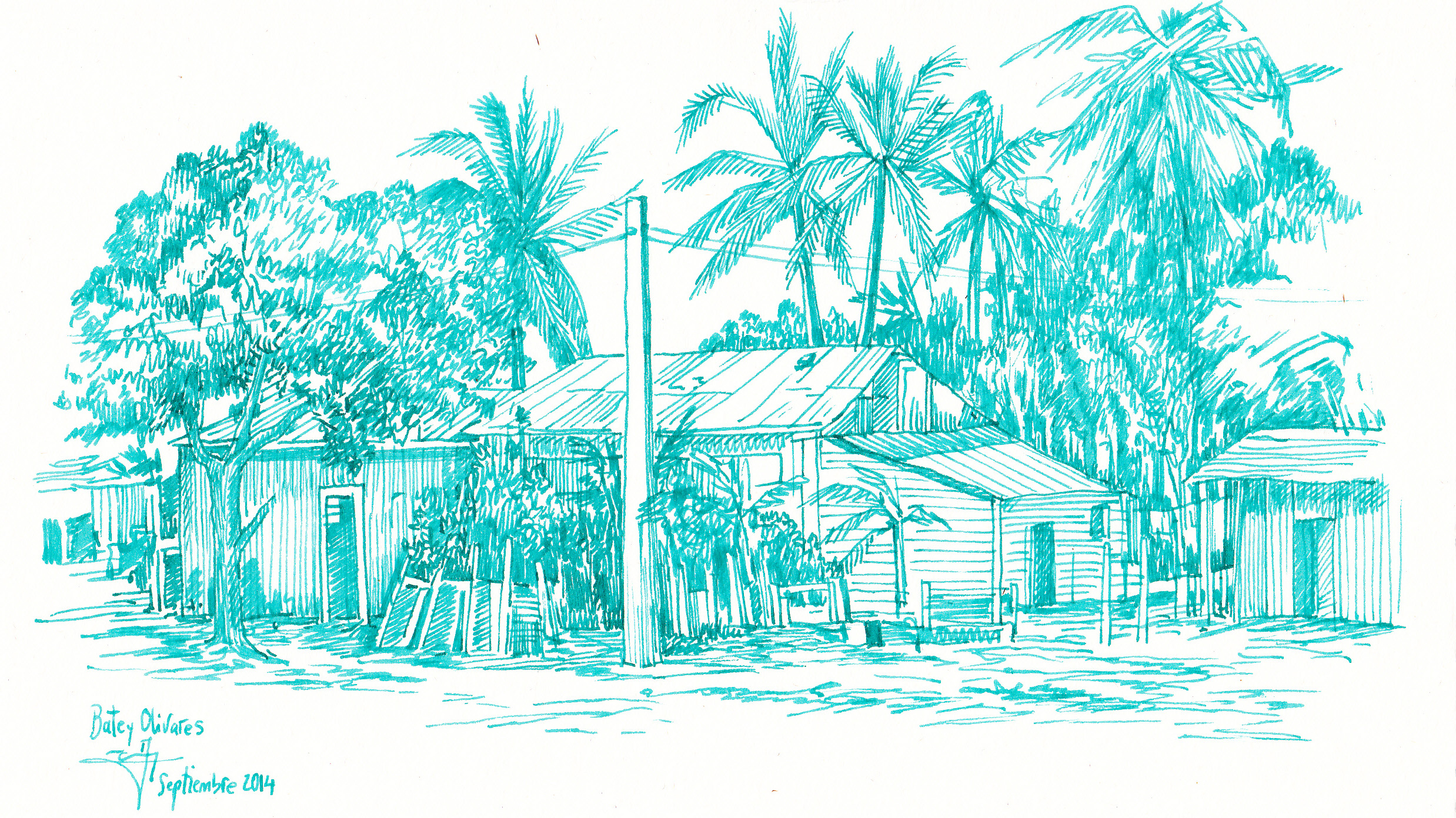 Durante el mes de agosto de 2014 tuve la suerte de compartir y vivir un proyecto de voluntariado en República Dominicana gracias al cual pude conocer en profundidad la realidad social del país, así como su diversidad paisajística. De esta vivencia nace esta serie de plumillas, una leve muestra de lo que pude conocer en ese tiempo. Como ejemplo este dibujo que muestra un batey, poblaciones rurales en mitad de los campos de caña de azúcar (más ejemplos en el apartado de dibujos).